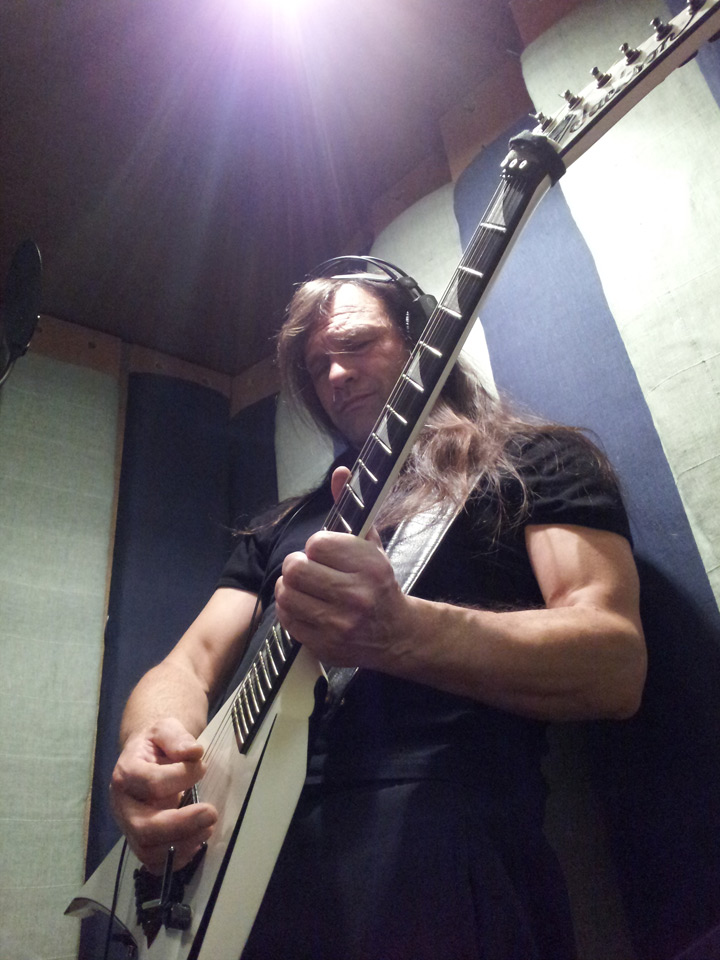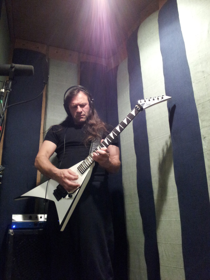 10:00 HRS sees Andy S back in the studio to finish rhythms and start solos and twin/harmony guitars, this time using his JACKSON RR24 with the same ENGL Fireball amp but this time using extetnal delay.